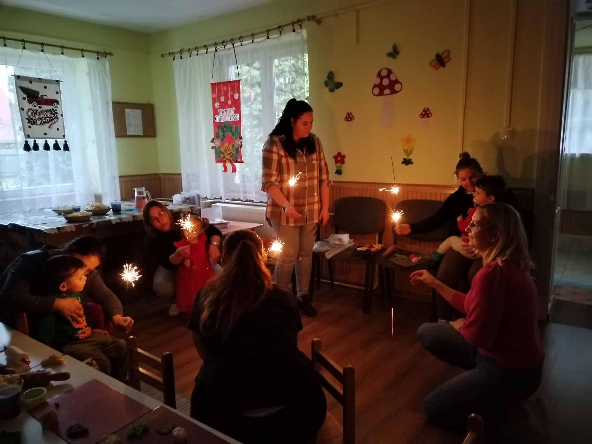 Az idei tanévben meghitt, családias légkörben készítettünk a gyermekekkel színes só-liszt gyurmából karácsonyi formákat, illetve ujjfestéssel karácsonyfát díszítettünk. A háttérben a programok közben karácsonyi zene szólt. A kézműves foglalkozás végén egy közös énekkel és csillagszórózással is megleptük az apróságokat. Dalunkat kolléganőnk gitáron kísérte, a csemeték csillogó szemekkel és fülig érő szájjal élvezték a közös éneket. Zárásként megvendégeltük a gyermekeket és szüleiket egy kis finomsággal, a Mikulás pedig minden kisfiút és kislányt meglepett egy csomaggal. A rendezvényen készült saját munkákat, illetve a mikuláscsomagot a résztvevők hazavitték.