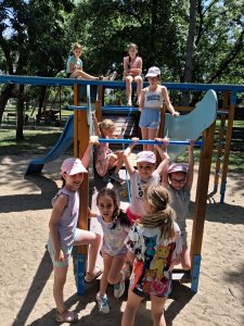 Napi programunkat az Ormos Park fáinak hűsítő árnyékában folytattuk, ahol a táborozók birtokba vették a kültéri játékokat, a kondi park gépeit és a sportpályát. A kincsvadászaton számos elrejtett papírcetlit gyűjtöttek össze, hogy elvégezzék a ráírt sportos, mókás, ügyességi feladatokat.