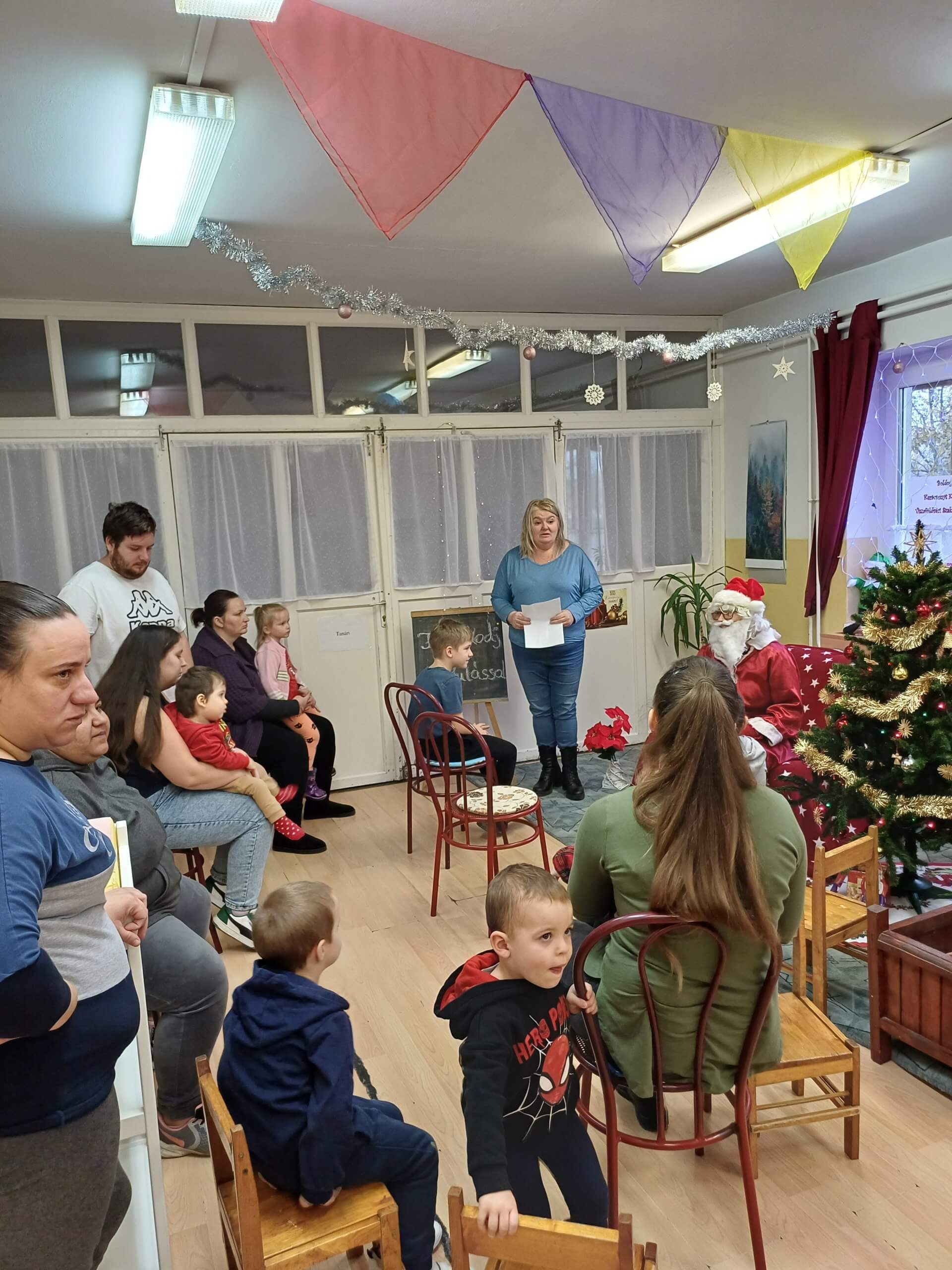2024. december 6-án tartottuk Mikulás ünnepségünket a Jász-Nagykun-Szolnok Vármegyei Pedagógiai Szakszolgálat Kunszentmártoni Tagintézményének Tiszaföldvári Telephelyén a korai fejlesztésben részvevő gyermekek számára. A családoknak lehetőségük volt közös képet készíttetni a fotósarokban, ami nagy sikernek örvendett. Külön nagy öröm számunkra, hogy néhány családnak itt készült az első közös képe. Ezután a gyerekek kézművesedtek, játszottak és szüleikkel együtt megvendégeltük őket. Míg várakoztak a Mikulásra, az időt hangos énekléssel, hangszereken való játékkal töltötték a szakszolgálat dolgozóival. A Mikulás érkeztével minden gyermek izgatott lett, voltak köztük, akik önállóan is énekeltek neki. Később a gyermekek ajándékcsomagjaikkal és a Mikulással közösen is készíthettek képet. Nagyszerűen érezte magát mindenki és így a korai fejlesztésben résztvevő kisebb gyerekek is gondtalanul élvezhették – vannak, akiknek az első- találkozásukat a Mikulással.