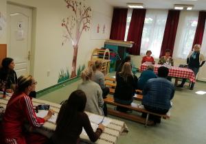 Az értekezleten megjelent szülőknek a Baloghné Bencsik Izabella bemutatta a telephely által biztosított szakellátási területeket, különösen a szakértői tevékenységet és a nevelési tanácsadást. Kovács Ágnes beszélt a korai fejlesztésről és a kisóvodások nevelési tanácsadás keretében történő komplex képességfejlesztéséről. Aztán én ismertettem a logopédiai ellátással kapcsolatos tudnivalókat. Tájékoztattam a szülőket a 3 és 5 éves korú gyermekek kötelező szűréséről. Ismertettem a KOFA-3 és a Szól-e? szűrőeljárások mérési céljait. Elmondtam, hogy a 3 éves korú gyermekeknél a logopédus a szókincset, a mondathasználatot és a grammatikát, míg az 5 éveseknél az artikulációt és a nyelvi fejlettséget veszi figyelembe, a felmerülő nehézségek súlyossági szempontjai alapján szervezi a kliensek helyszíni csoportos ellátását. Az artikulációs zavar logopédiai terápiás tevékenysége közül kiemeltem az artikulációs mozgásügyesítő gyakorlatok fontosságát, illetve szemléltettem a nyelvizomzatot erősítő alapgyakorlatokat. Felhívtam a szülők figyelmét a házi feladatos füzet fontosságára és a napi/heti otthoni gyakorlások intenzív hatékonyságára a gyermekek fejlődésével kapcsolatban. Második alkalommal 2024. szeptember 25-én az Újszász Városi Óvodában Baloghné Bencsik Izabella, Dr. Korpásné Bakos Valéria (fejlesztőpedagógus) és jómagam tartottunk szülői értekezletet. Baloghné Bencsik Izabella ismertette a szakértői tevékenységet, a nevelési tanácsadás keretében zajló pszichológiai ellátást és alapozó terápiát. Dr. Korpásné Bakos Valéria rávilágított az iskolakészültség jelentőségére, illetve részletesen bemutatta a különböző – az iskolai tanuláshoz szükséges – részképességek területeit. Logopédusként az óvodába járó gyermekek szüleinek elmondtam a logopédiai ellátással kapcsolatos információkat, a beszédkórképek közül az artikulációs zavar iskolai teljesítményre gyakorolt hatását, illetve bemutattam az ezzel összefüggő szülőket érintő, otthon végezhető gyakorlati ismereteket.